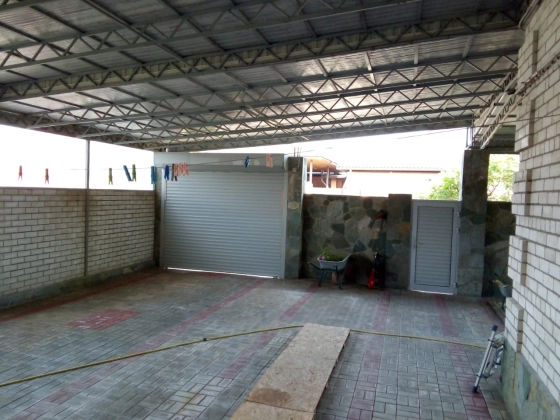 Во дворе общей площадью 130 кв.м., накрытом навесом из металлопрофиля, находится стоянка для 2-х автомобилей с электрическими воротами.
