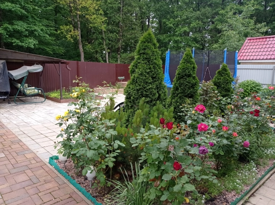 52 куста разных роз, хосты, хвойные, гортензии, ирисы,