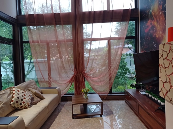 потолки от 4-х до 6 метров, панорамные окна, профиль из