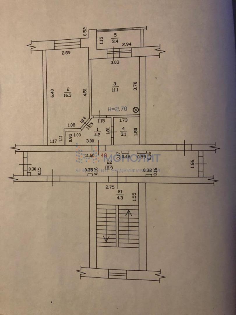 Продается 1 комнатная квартира общей площадью 38 кв.м на 5/5 этаже по адресу ул. Ворошилова, д. 38.